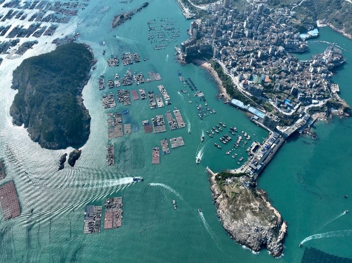 福建连江县奇达村海域鲍鱼养殖区(2024年12月31日摄,无人机照片)。新华社记者 姜克红 摄