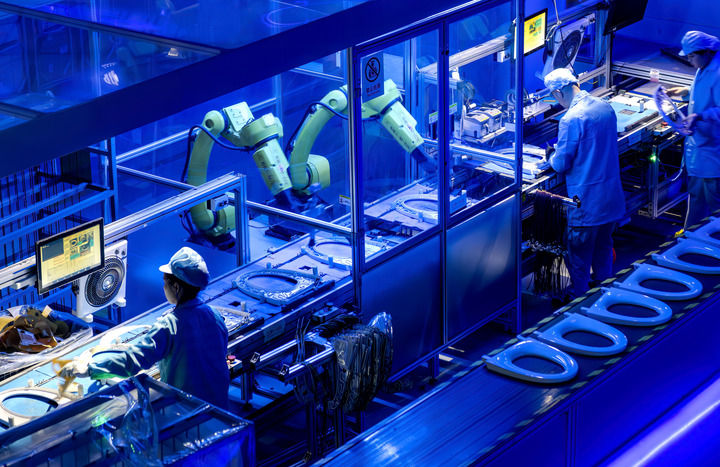 这是位于福建南安的全球首个“绿色黑灯工厂”科牧绿色黑灯工厂,该厂占地100亩、总投资8亿元,借力数字化、智能化,每年可节约用电超1亿千瓦时,减排超1.8万吨,整个工厂每年可生产450万套智能马桶(2024年12月2日摄)。新华社记者 魏培全 摄
