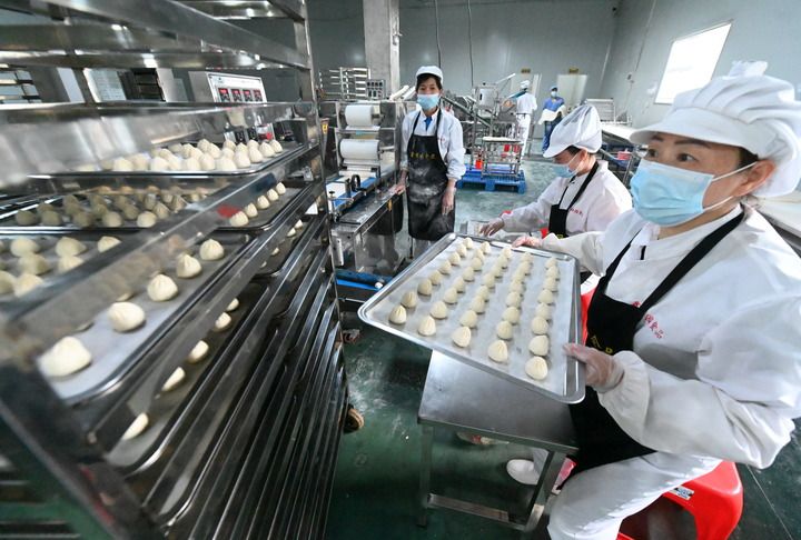位于三明市沙县库区移民创业园的福建鑫满园科技食品有限公司员工在生产沙县小吃“小笼包”(2023年4月14日摄)。新华社记者 林善传 摄